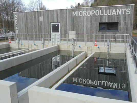 Cette démarche ne se fait évidemment pas au détriment de la fonction première de la STEP : traiter les eaux usées. RWB est ainsi le premier bureau d’ingénieurs à avoir planifié et mis en service, en 2022, deux installations de traitement des micropolluants en Suisse romande, la première avec un procédé à l’ozone + filtre à sable (STEP de Porrentruy, 25'000 EH), la seconde avec des filtres à micrograins fluidisés (STEP de Delémont, 60'000 EH).