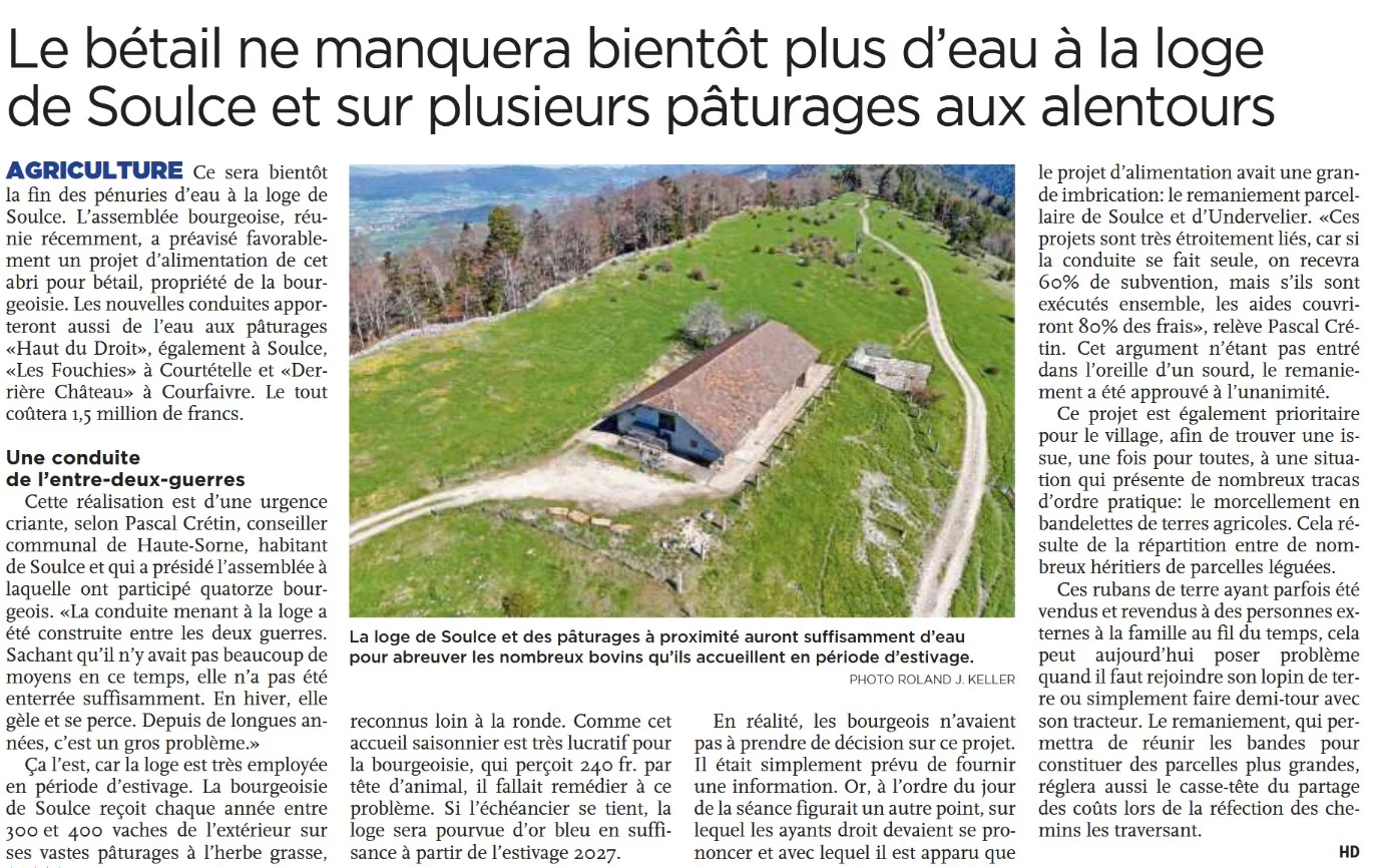 Retrouvez l’article de RFJ à ce sujet : https://www.rfj.ch/rfj/Actualite/Region/20260413-Un-nouveau-reseau-d-eau-pour-le-betail-de-la-loge-de-Soulce.html