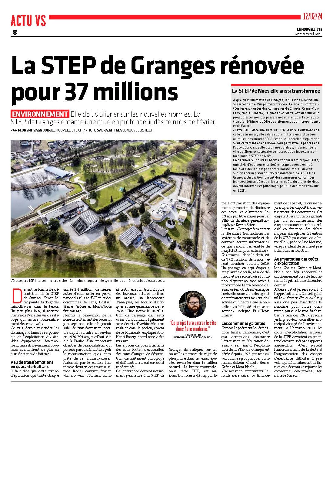 Après presque 3 ans d’études de projet, de procédure de demande d’autorisation et d’appels d’offres d’entreprises, le chantier de la STEP de Granges va démarrer début mars 2024 pour une refonte complète de sa filière de traitement des eaux usées. Le projet, conçu sur une maquette 3D, prévoit la construction d’un nouveau bâtiment administratif, d’une halle de prétraitements, de bassins biologiques et d’une filtration tertiaire.